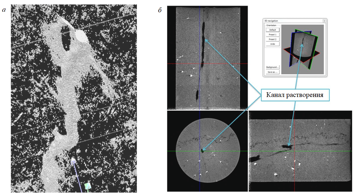 Изучение образования каналов-червоточин в результате соляно-кислотной обработки в коллекторах сложного типа по данным фильтрационных и цифровых рентгенотомографических исследований