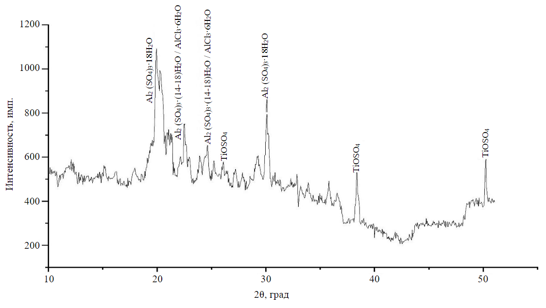 Фазовый состав полученного образца комплексного титансодержащего коагулянта представлен на дифрактограмме (рис.2).