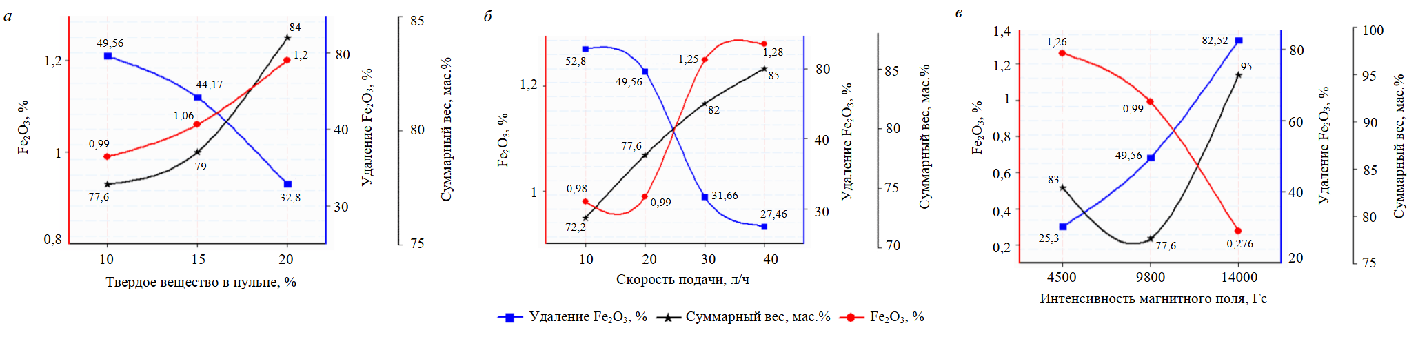 Удаленный Fe2O3, % |