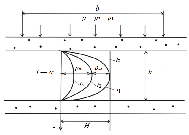 When external pressure is transferred to water-saturated soils, it redistributes between solid particles and pore water. Researchers have adopted various approaches to filtration consolidation in water-saturated clay soils, whose development intensity depends on the dynamics of pore pressure changes.
