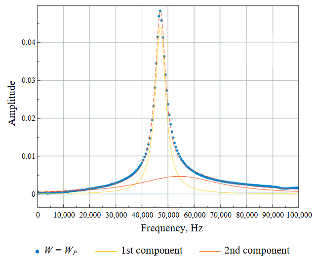 The water structure in the water-saturated clay sample (Mс = 40 %) was determined at a moisture content approaching the plastic limit (W = WP = 26 %). The T1 values measured via the ECHO-12 relaxometer ranged from 4.76 to 9.62 ms. The narrower T1 variation range may be attributed to both minimal pore diameters and the stronger in-fluence of epitaxial centres on pore water structuring relative to polarising centres. The signal spectrum analysis revealed only two components: crystallization water within the clay mineral structure (19 kHz) and a unified component that represent the structural integrity of the pore water in the soil (Fig.5).