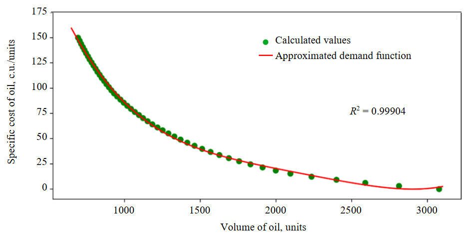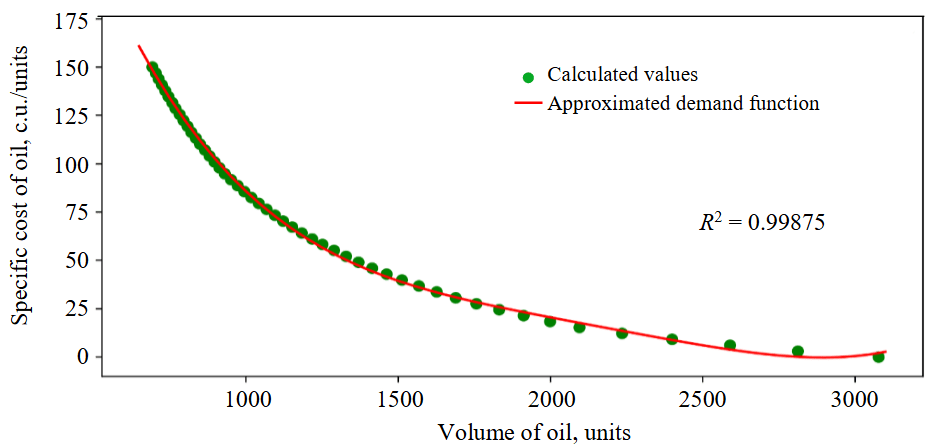 Fig.4. Result of approximating the demand function in oil market for market scenario N 2