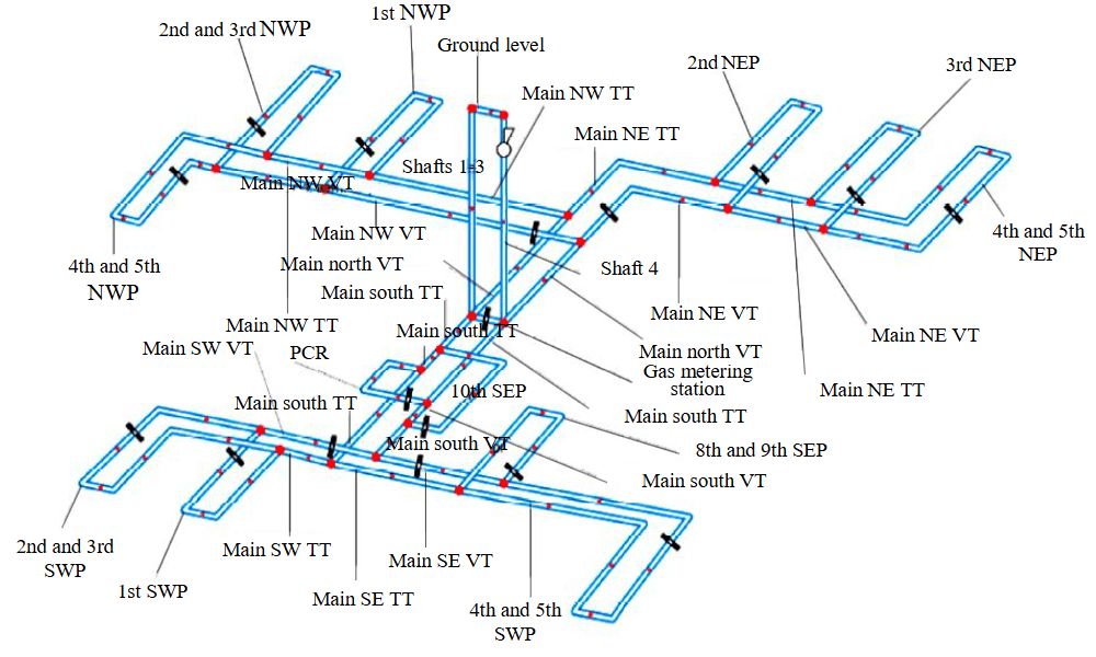 Fig.1. Simplified ventilation scheme of the BKPRU-4 mine