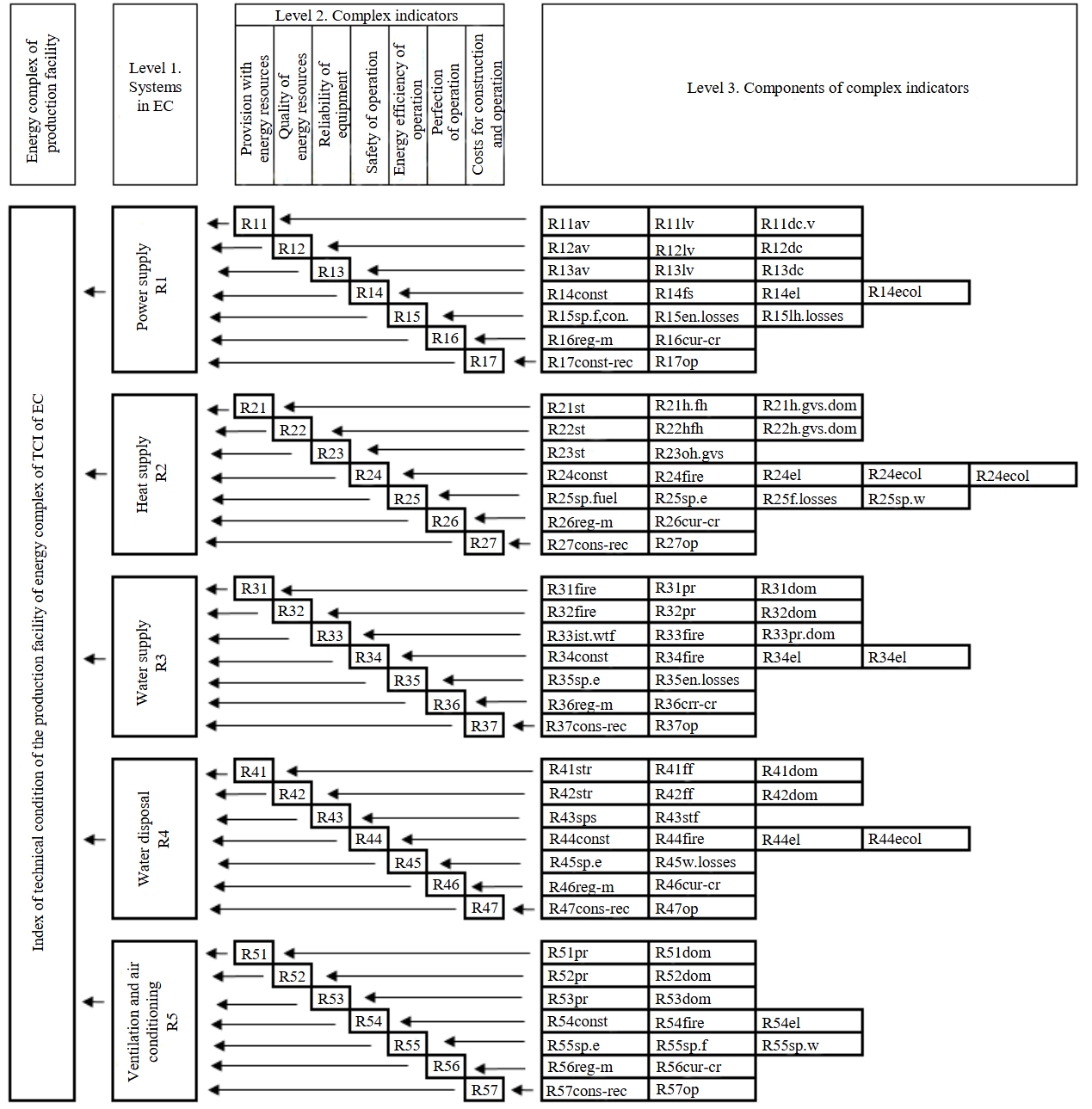The description of the mathematical support for determining the TCI of the PFEC is carried out according to the principle of “system included in the EC indicator” with the assignment of corresponding indices to all values – Rij for individual power supply systems and Rec for the PFEC as a whole.