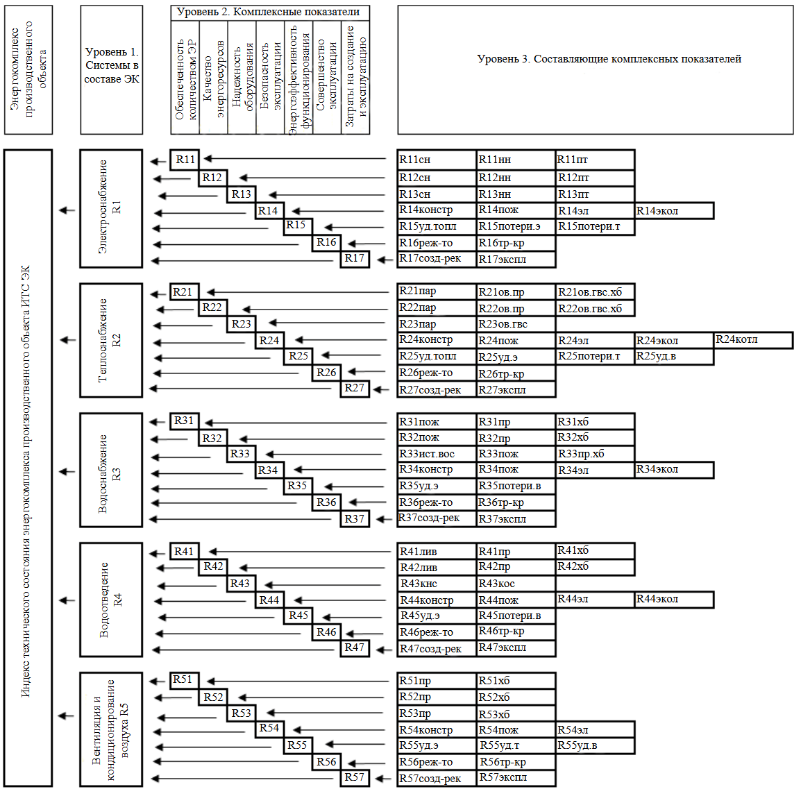 Перечень рисков, напрямую связанных с изменениями требований к энергоснабжению [9, 20, 21], позволил определить минимально достаточный перечень оцениваемых комплексных показателей ЭК ПрОб: