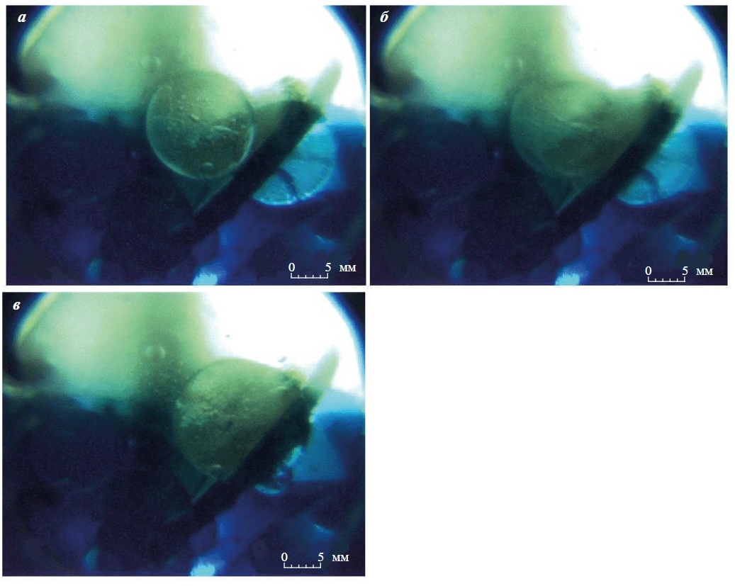 Понижение температуры в автоклаве Т ≤ 0 °С и образование льда/гидратов на внутренней стороне смотровых окон для видеокамер приводит к конденсации с наружной стороны. Это мешает визуальному наблюдению за процессами, что необходимо учитывать в дальнейших исследованиях.