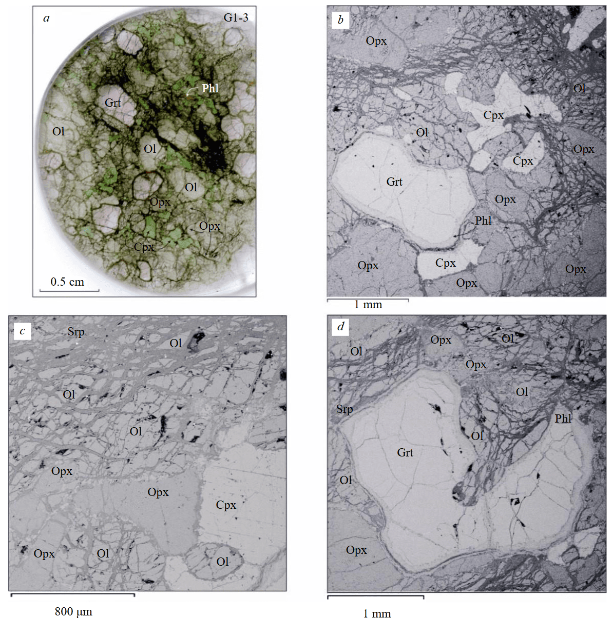 Ol – olivine; Opx – orthopyroxene; Cpx – clinopyroxene; Grt – garnet; Phl – phlogopite; Srp – serpentine