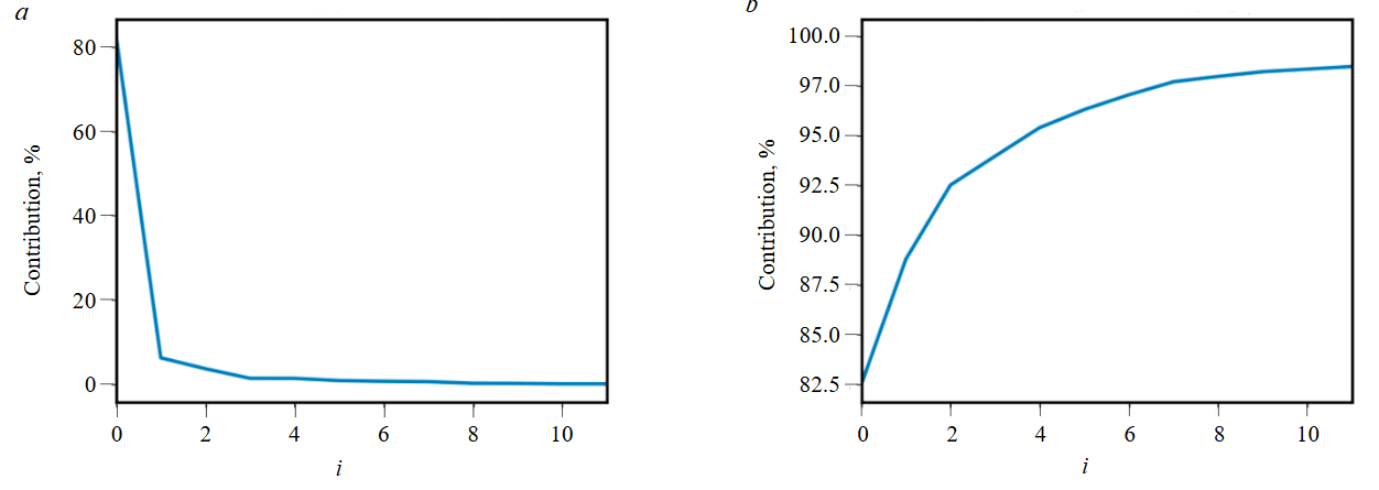 - Calculation of the relative and cumulative contribution of components to the initial time series for subsequent determination of the required volume of components when grouping them (Fig.4).