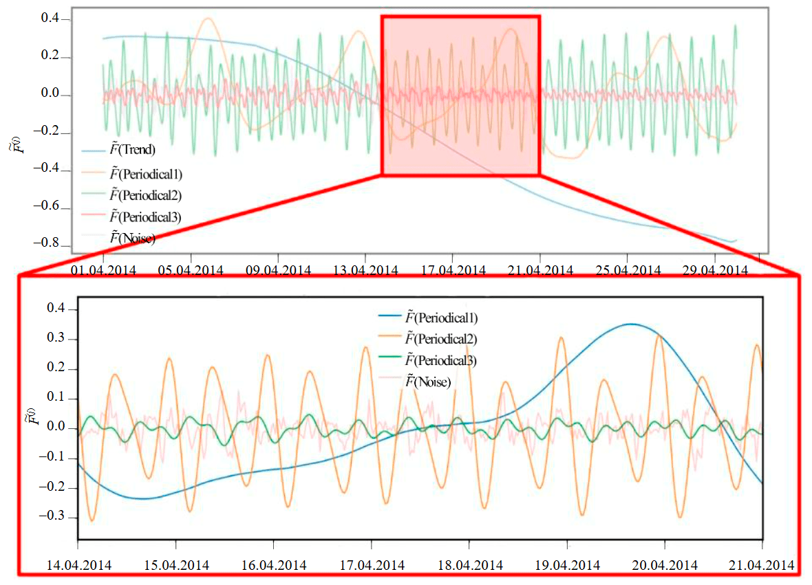 Fig.1. Electricity consumption graph for April 2014 and 12 components of the time series [34]
