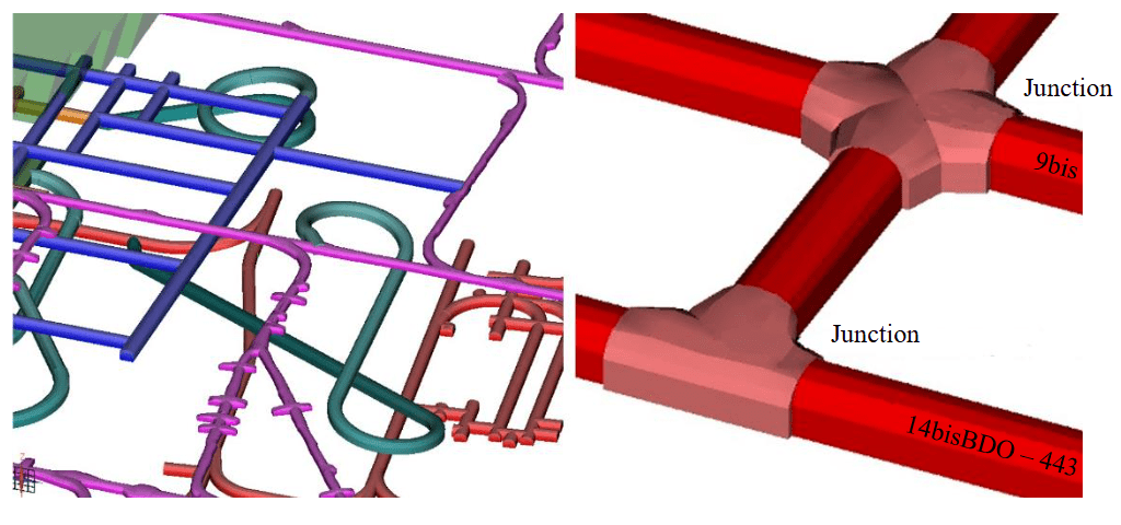 Geotechnology. The evolution of methods for modelling underground mine workings indicates a transition to more detailed representation of their cross-sections and junctions. In both foreign and national MGIS systems, automation of the design process for workings is generally absent, which affects the speed of design and accuracy of models. To automate this process, a set of tools was developed in MINEFRAME that provides parametric modelling of workings and their junctions based on a set of cross-sections (Fig.2), for the creation of which standard or user formulas for estimation are used. Shape control for the selected type of cross-sections is implemented by setting the width and height of the working. Cross-sections are linked to the working axis and positioned along linear sections and curves through defining parameters of the generated models.