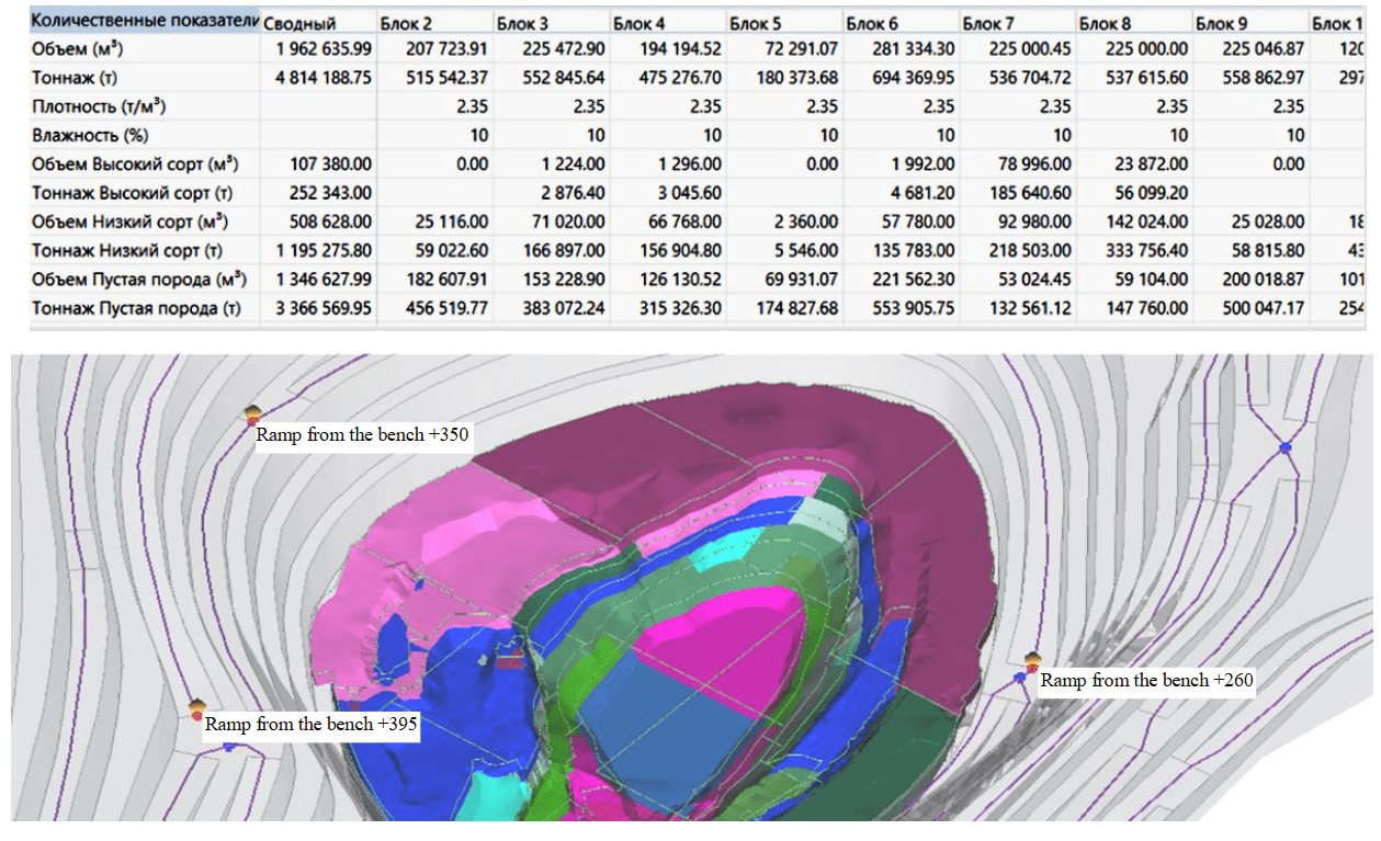 - assessment of volumes of preparatory and cutting works based on planned ore volumes, considering the prepared reserves coefficient;