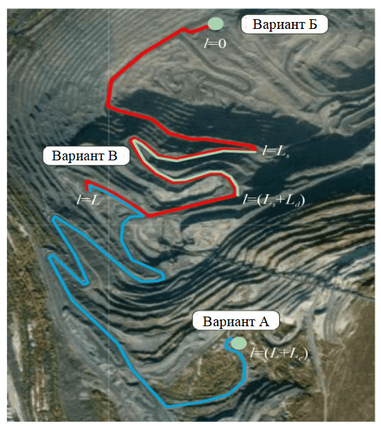 Параметры α и κ изменяются по длине трассы. Рассматривая вновь создаваемые предприятия открытой добычи полезных ископаемых следует использовать проектные значения этих величин. Для эксплуатируемых предприятий наилучшим решением является использование геодезической информации [35], а при отсутствии возможности инструментальных измерений – спутниковые данные, полученные от геоинформационных систем. Предлагается использовать Google Maps API для получения координат широты φ и долготы λ точек на трассе и Elevation API для определения их высоты над уровнем моря h. В таком случае уклон в градусах определяется как