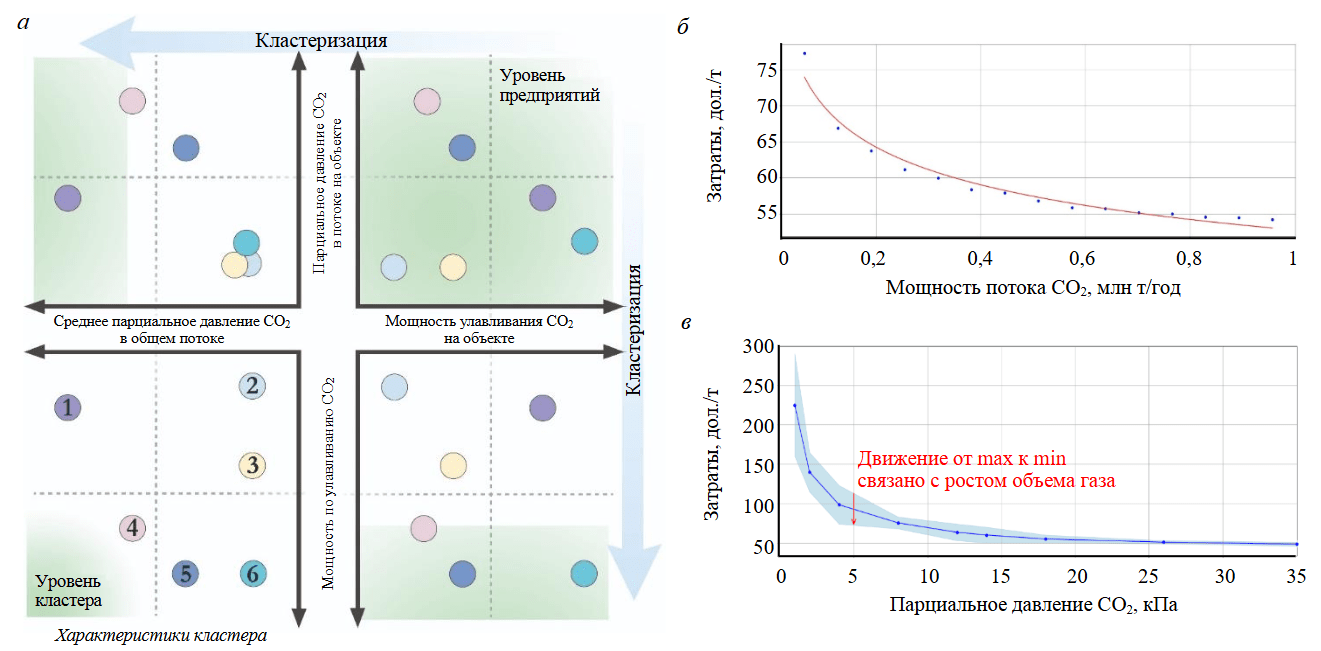 - разработка кластерного подхода к реализации проекта улавливания CO2 и модели для оценки его эффектов;