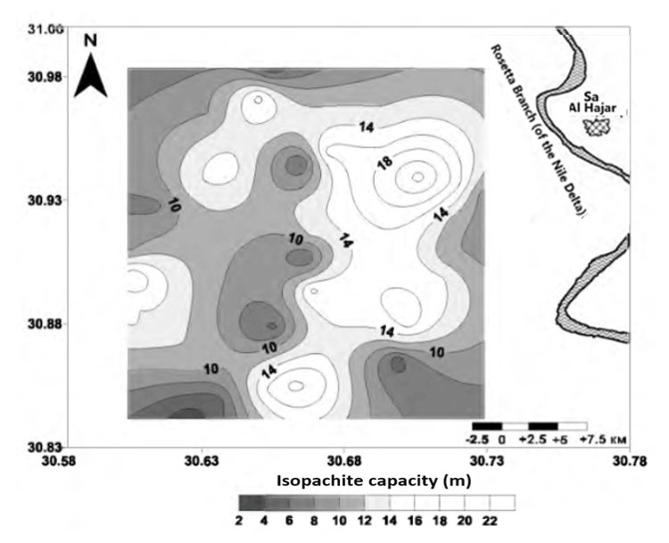 Fig. 4. Holocene silt thickness isopachites of the Nile Delta (Itay El-Baroud area)